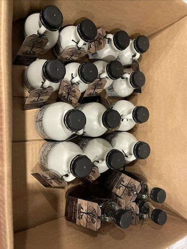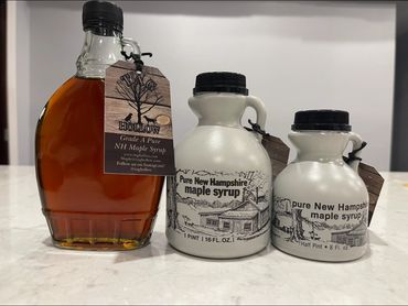 We sell our maple syrup in 8, 14, and 16 oz bottles which are available at our farm stand with advanced notice. Requests can be made via social media/ email or by text to our farm line.